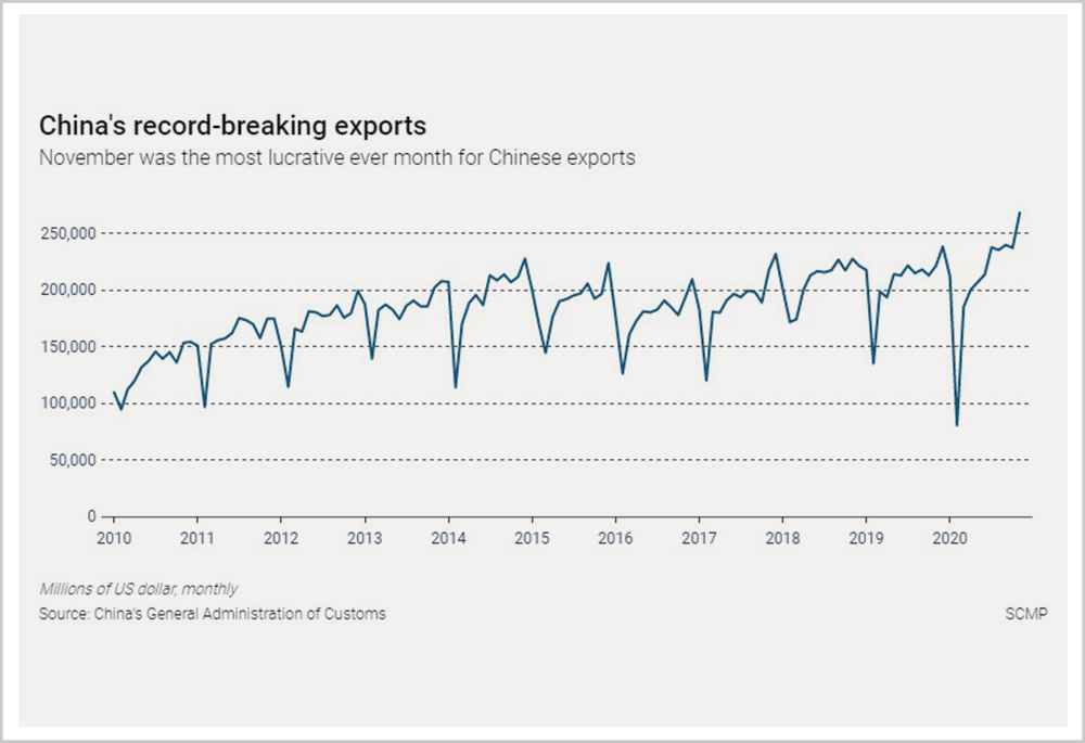 幾乎全世界的人,包括中國(guó)人,在年初都沒(méi)想到,2020年會(huì)以這樣一種全球瘋買中國(guó)貨的方式收官。