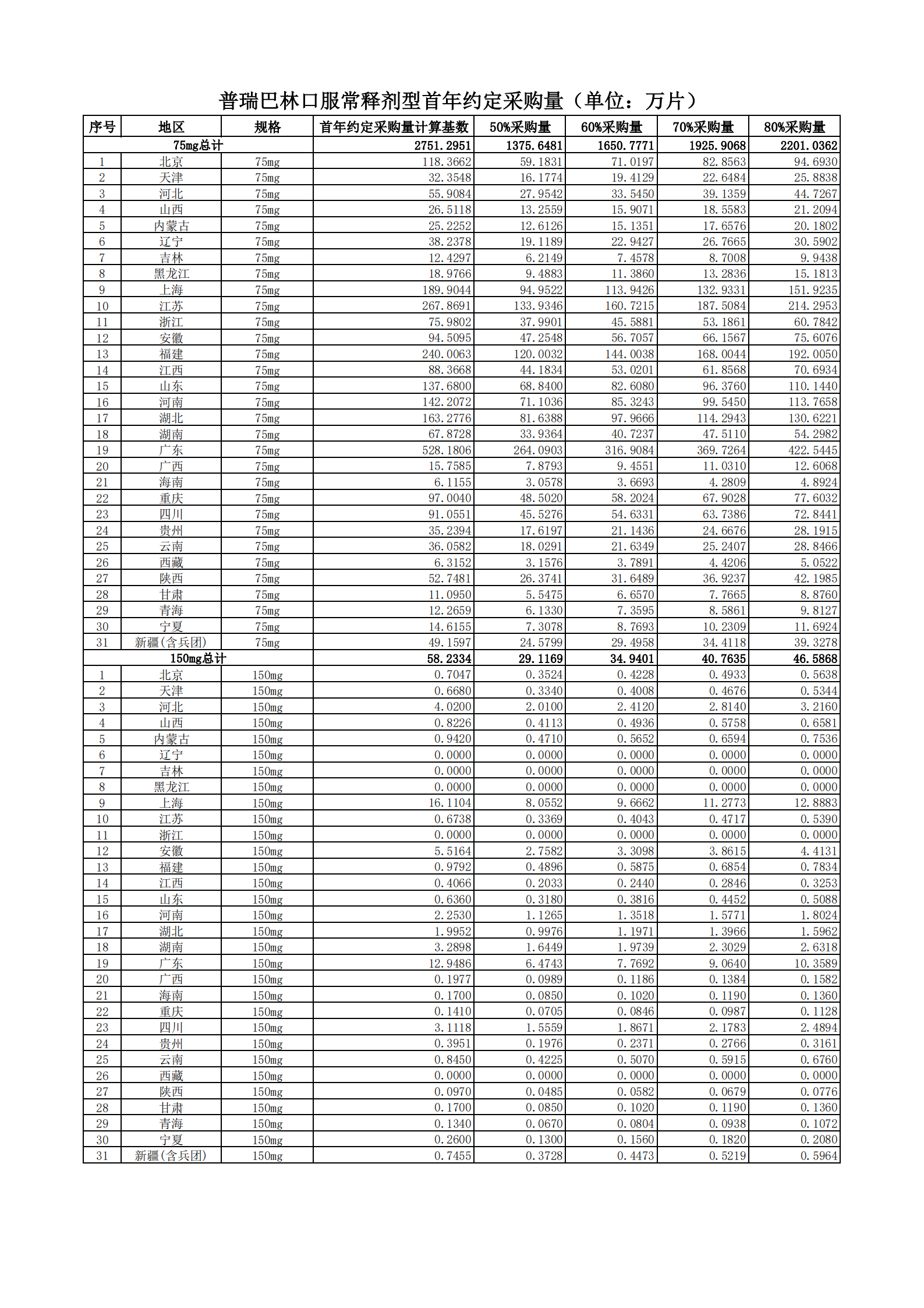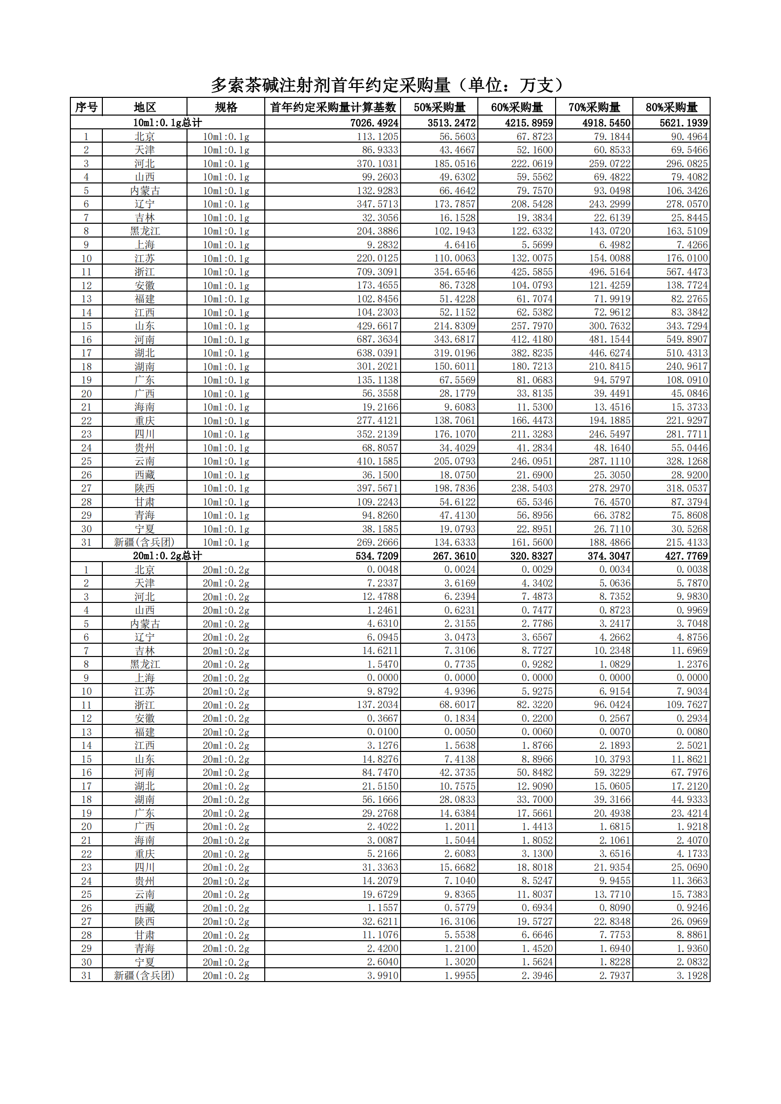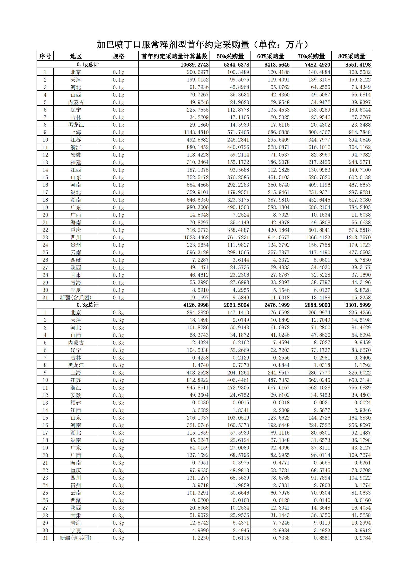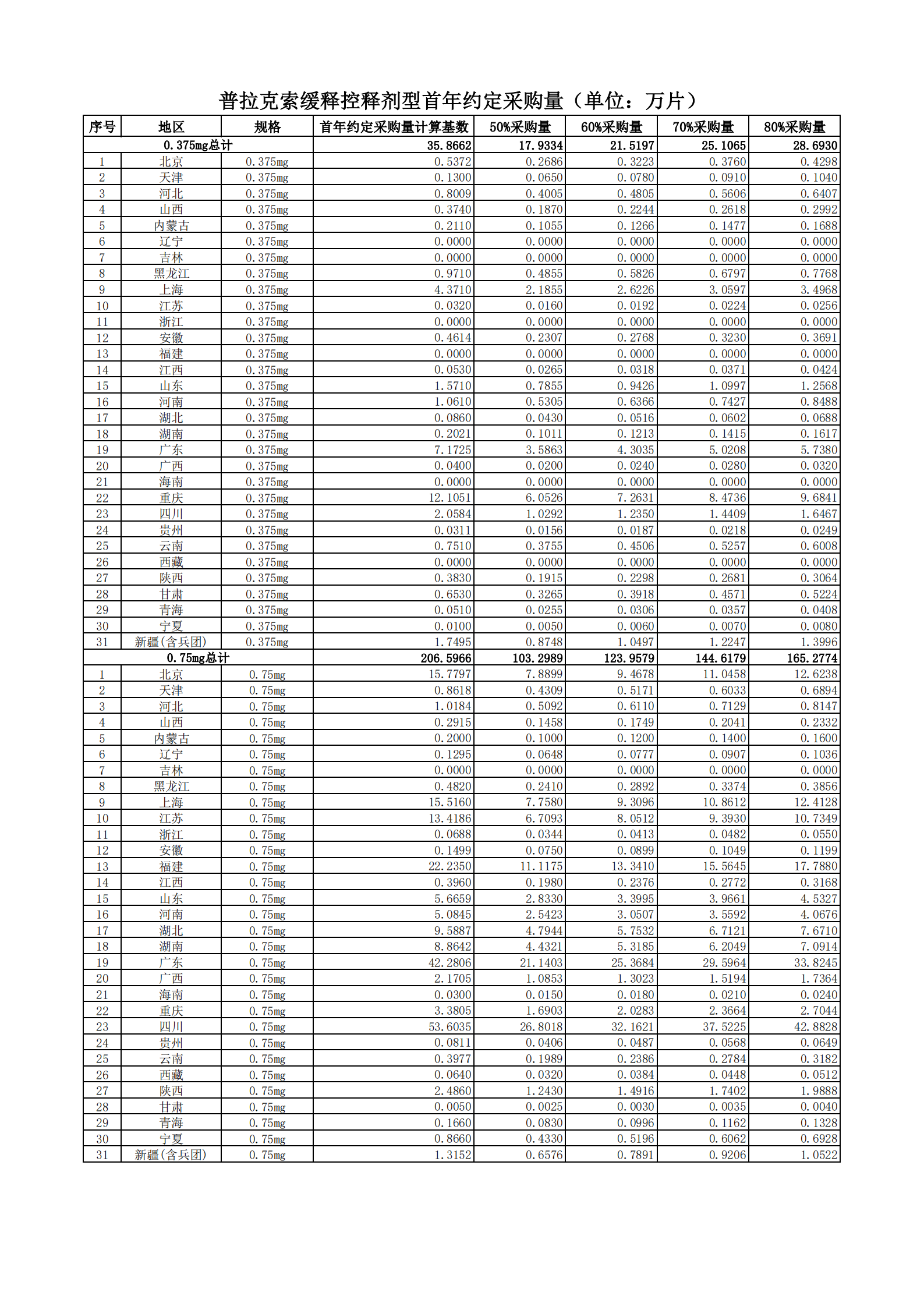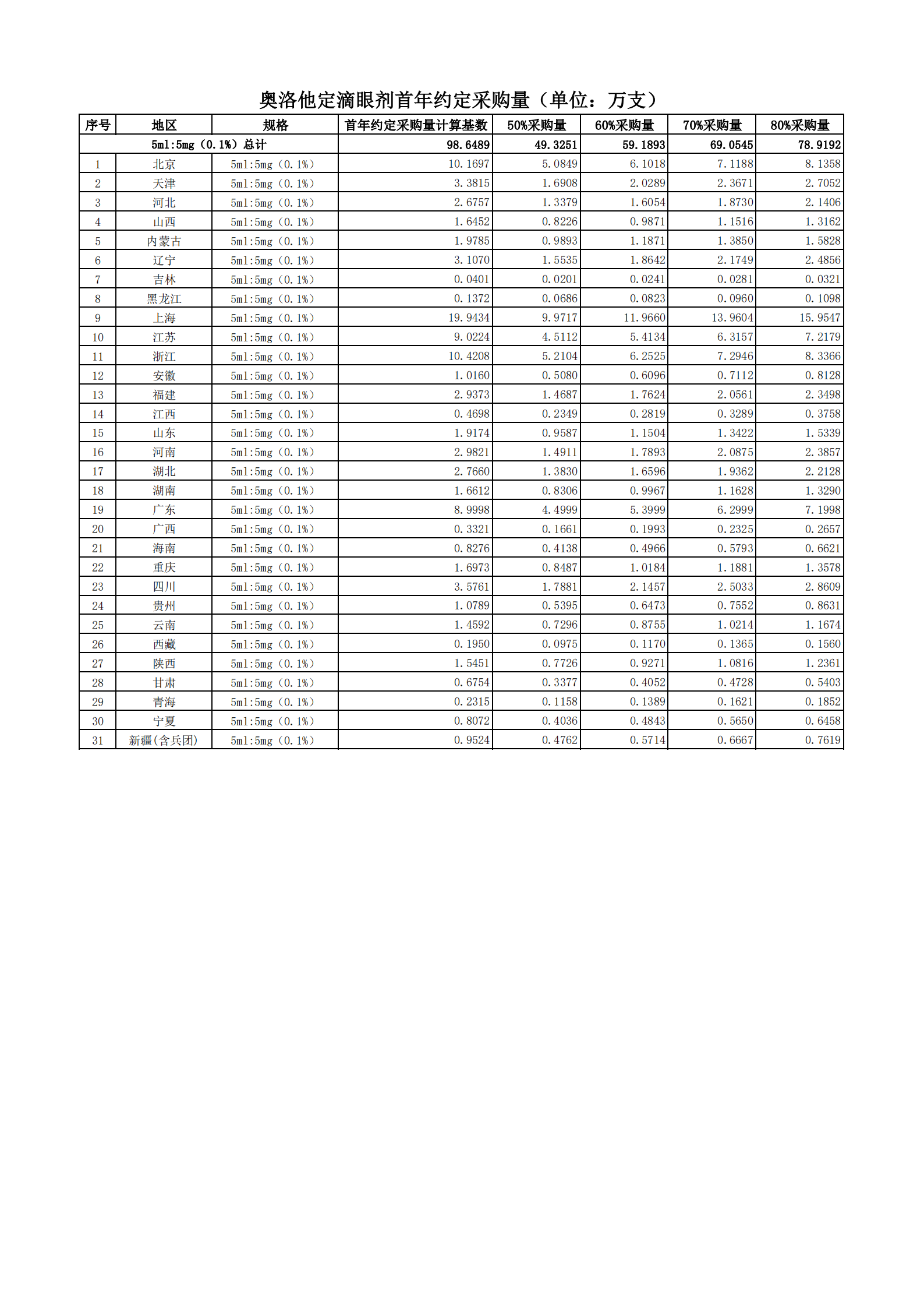 附表2 各地首年約定采購量