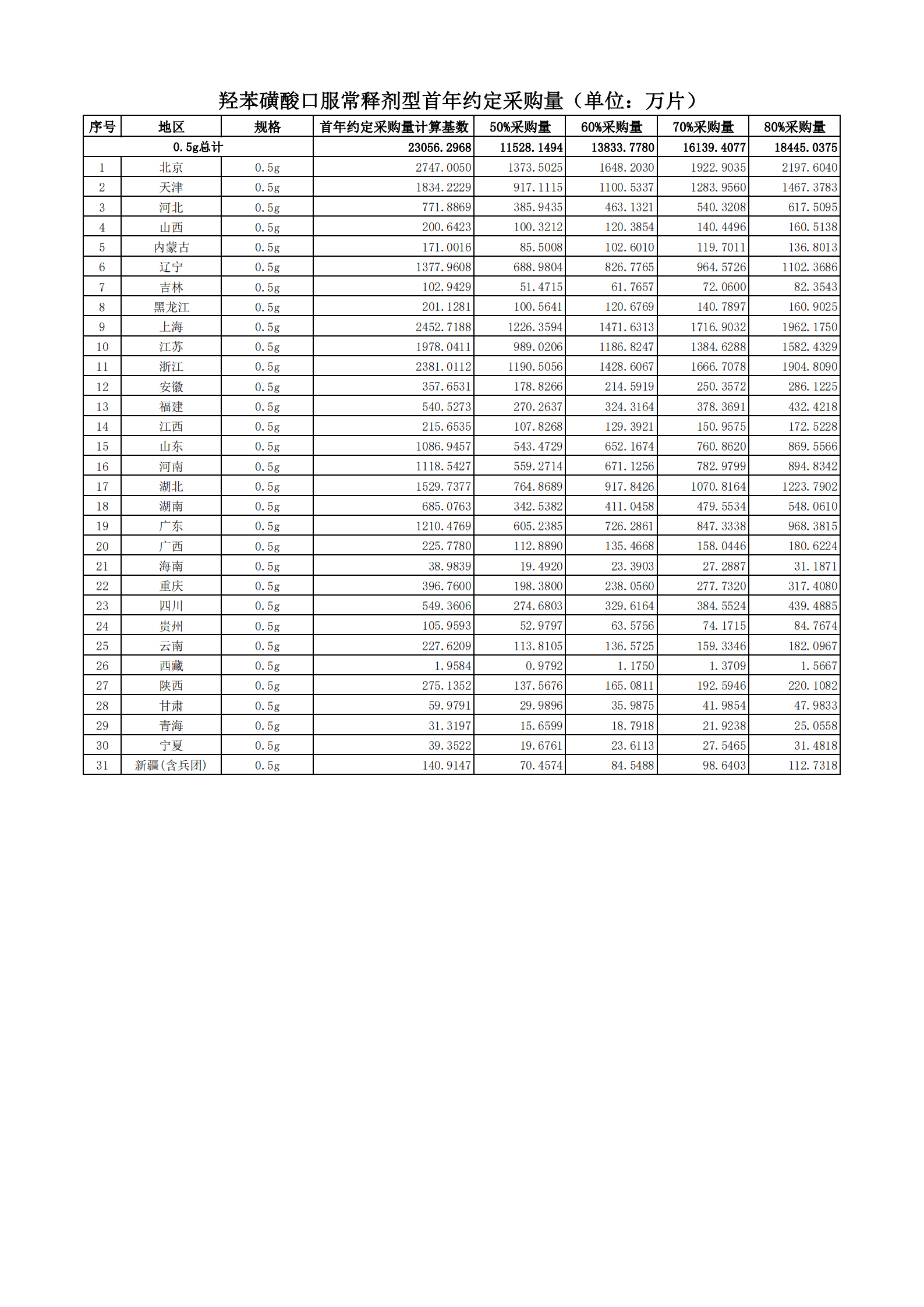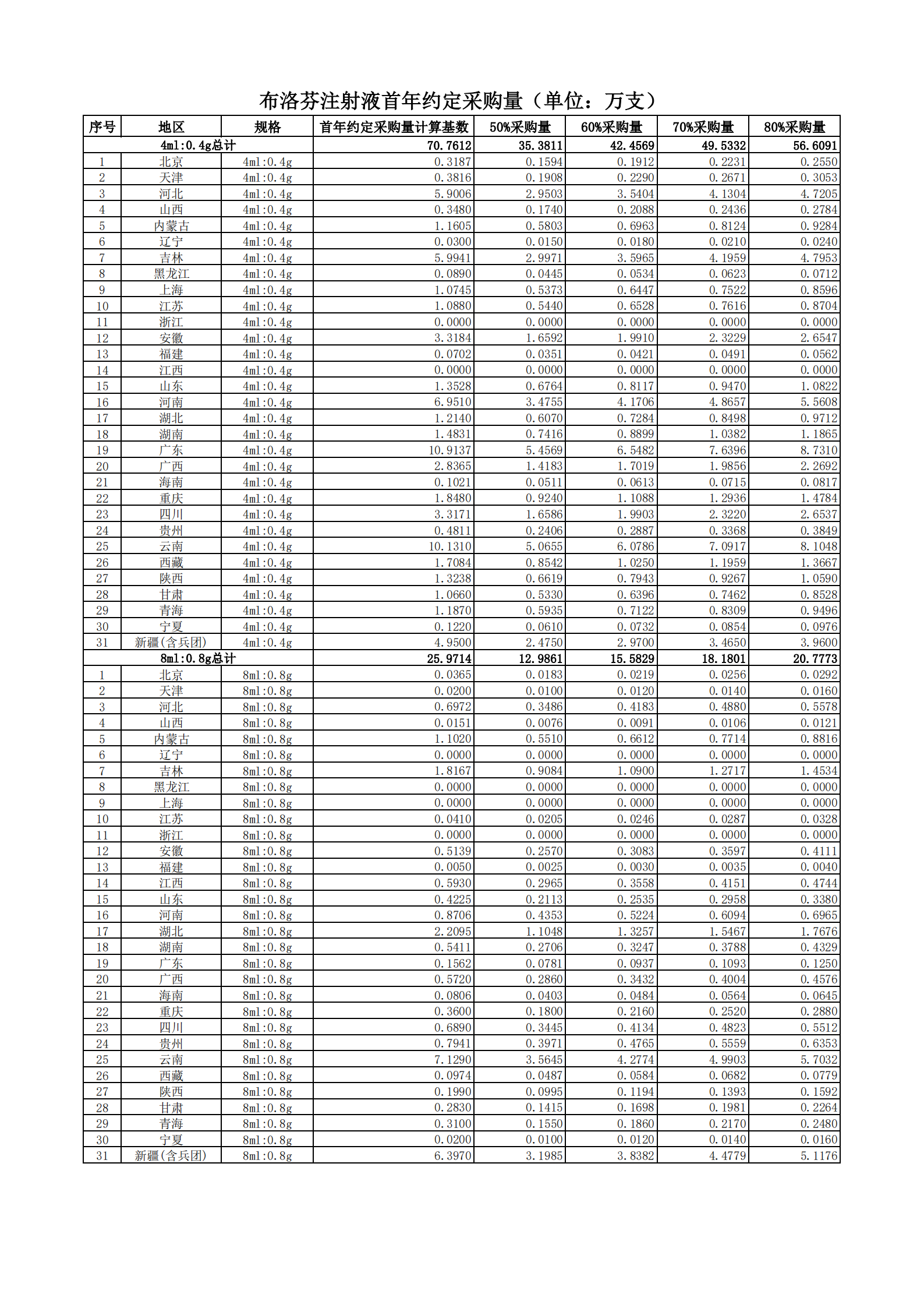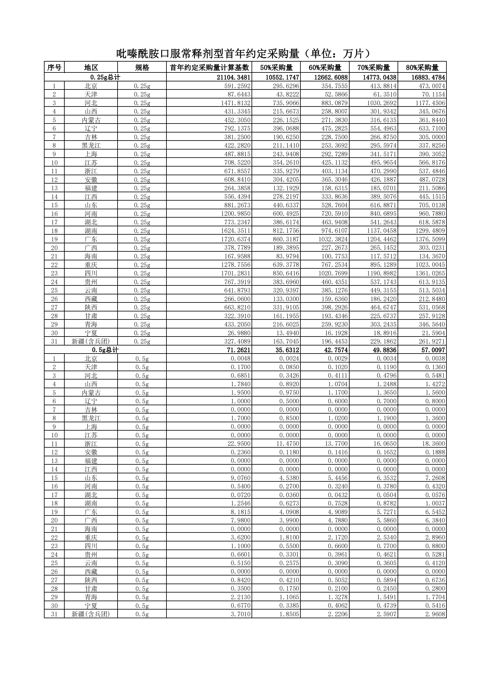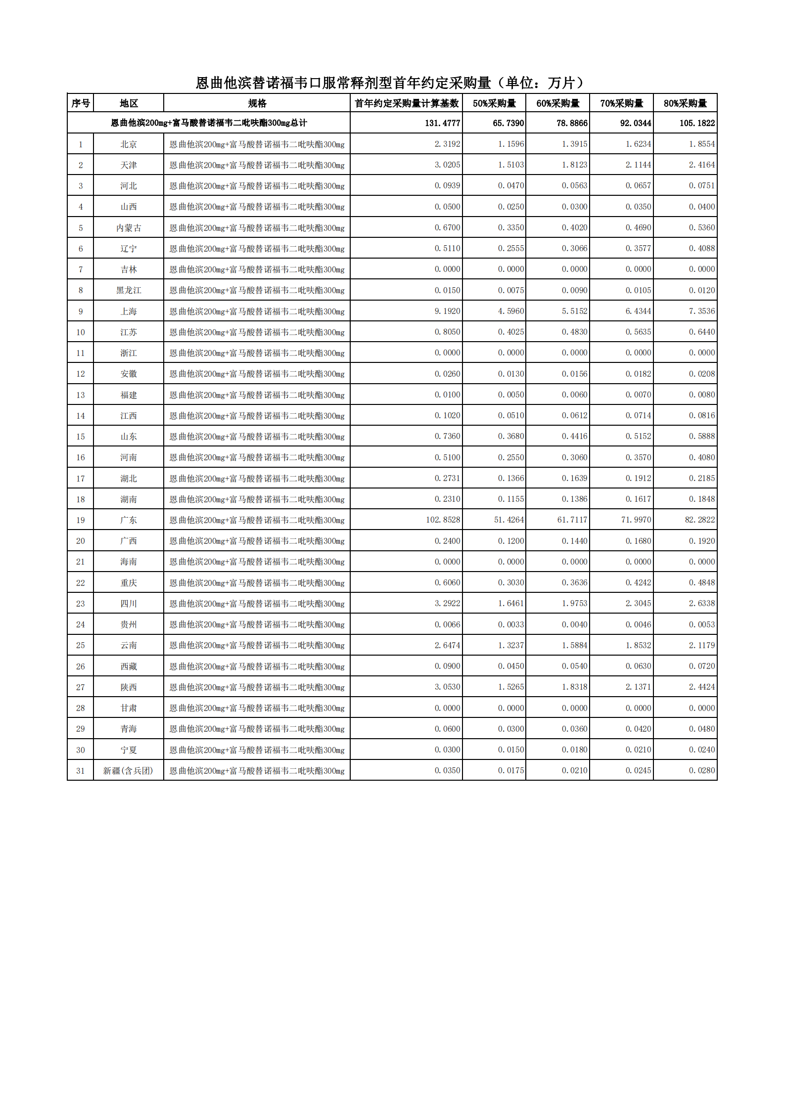 附表2 各地首年約定采購量