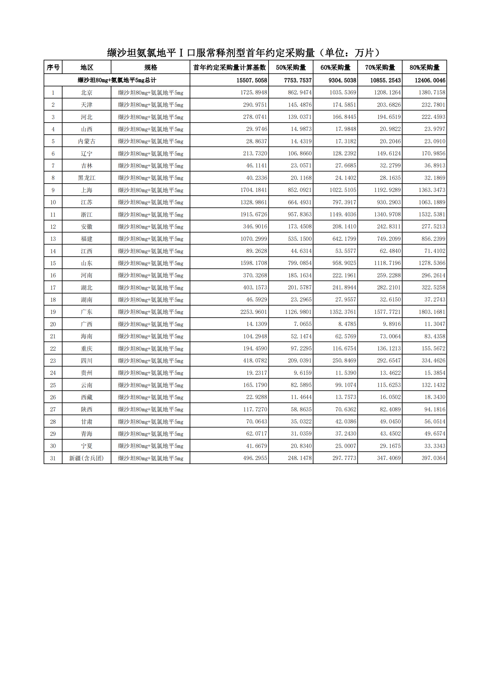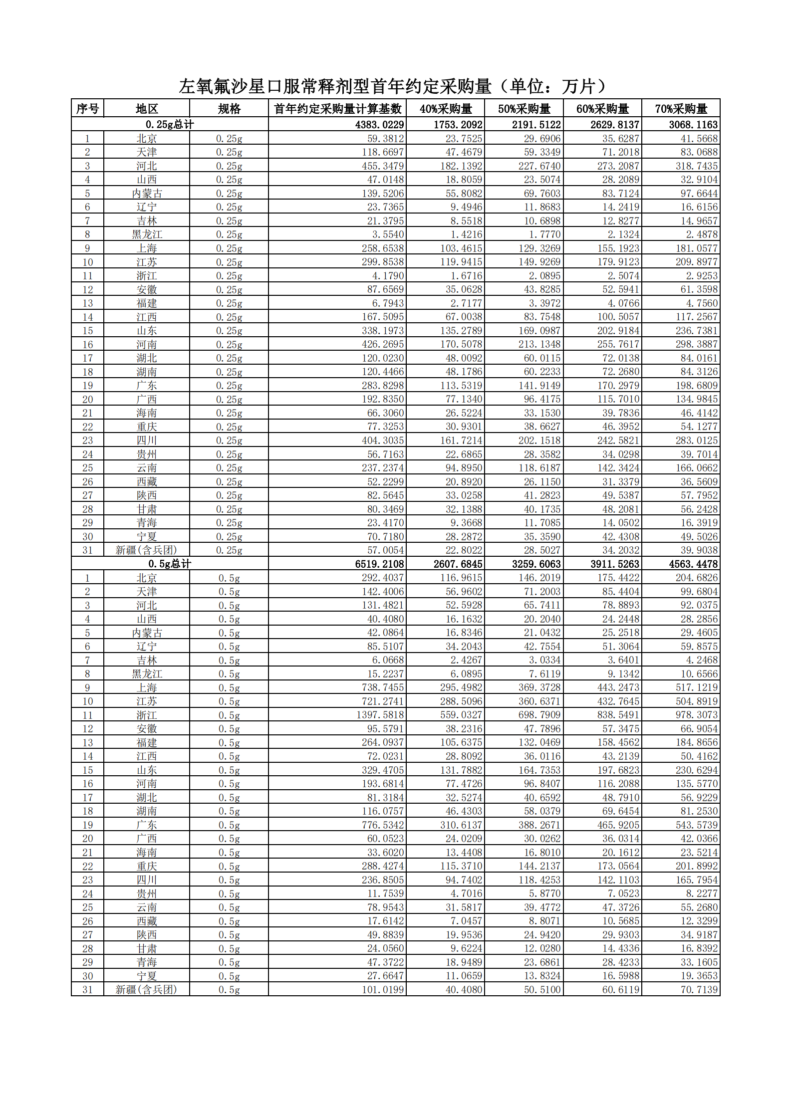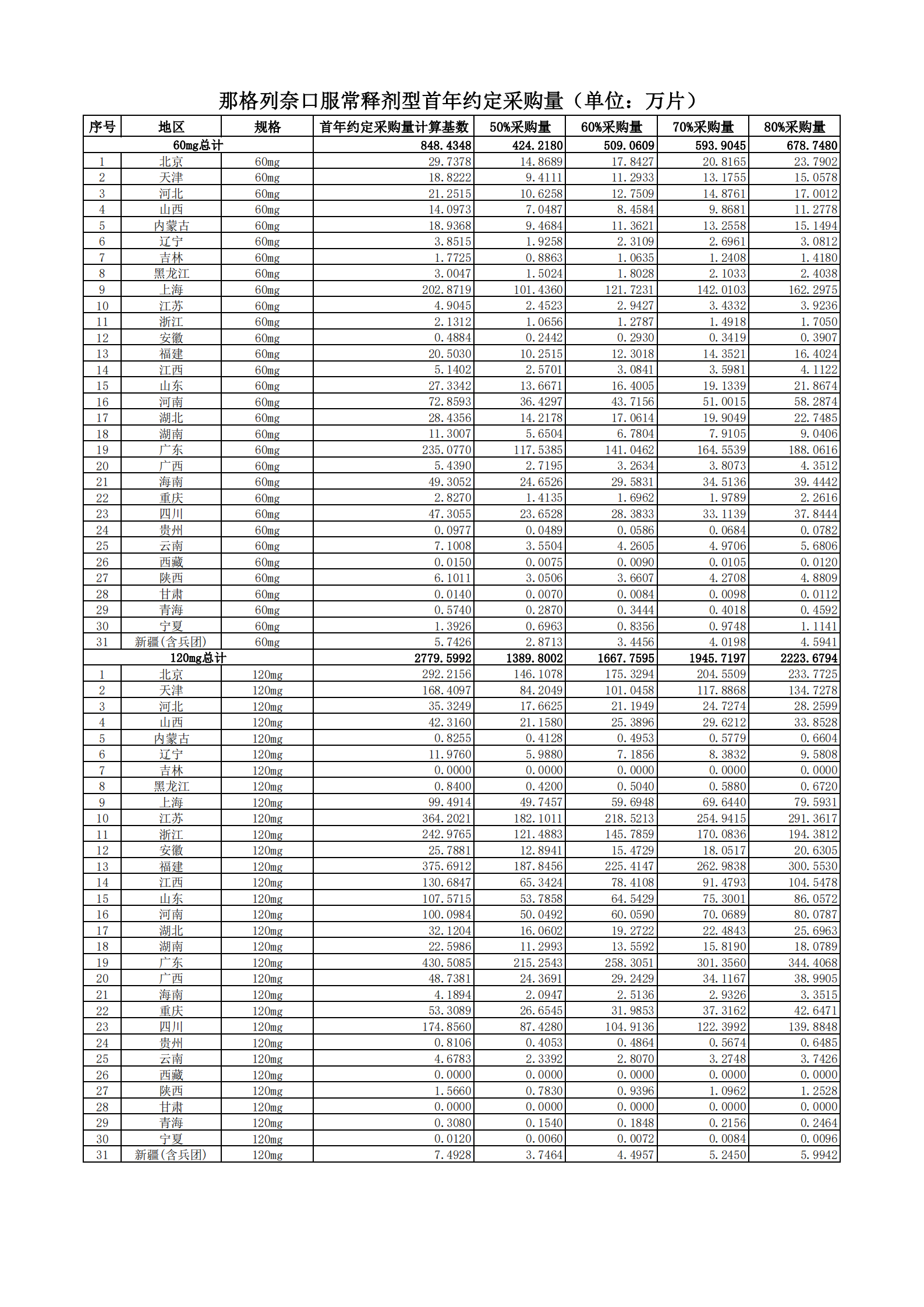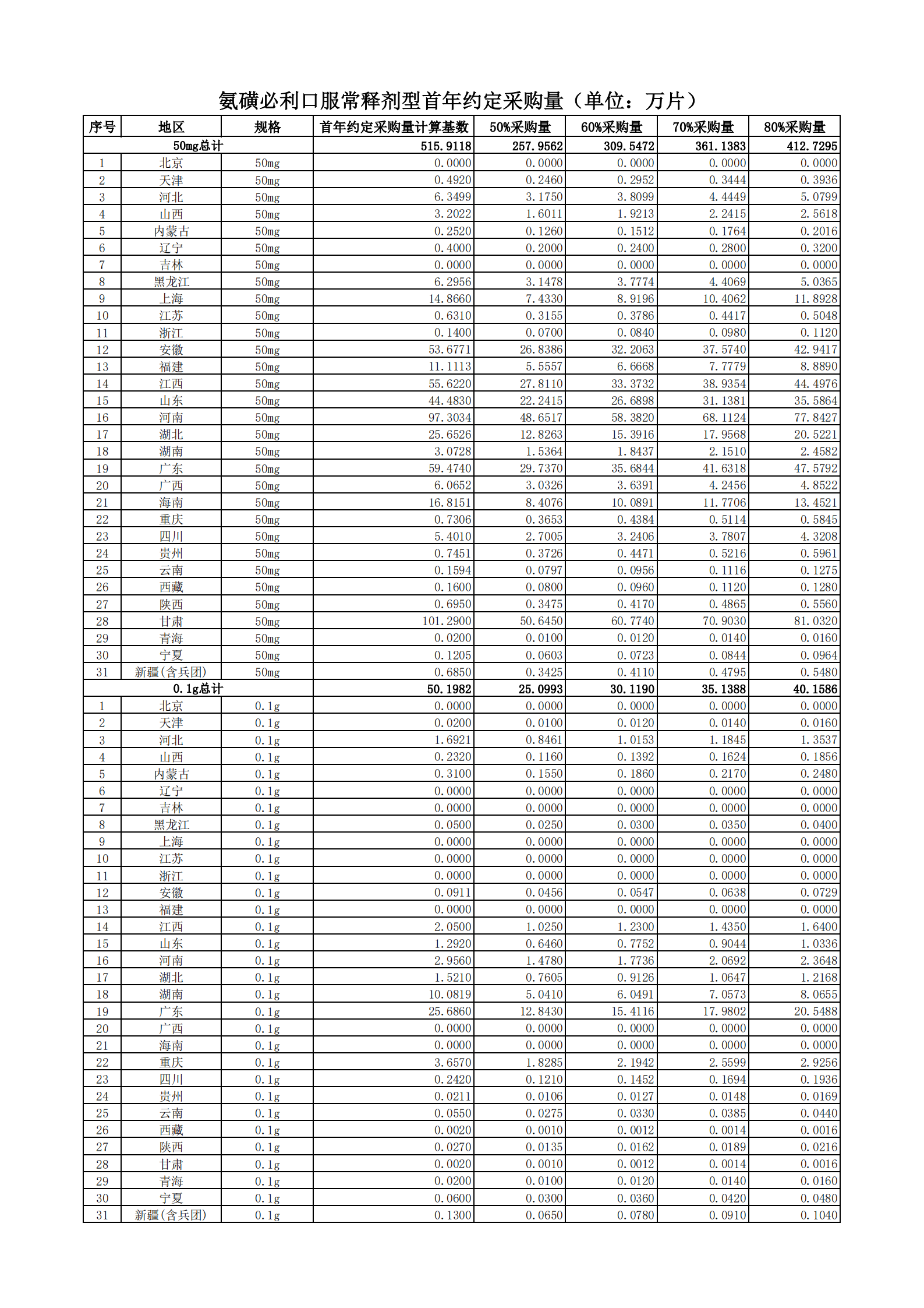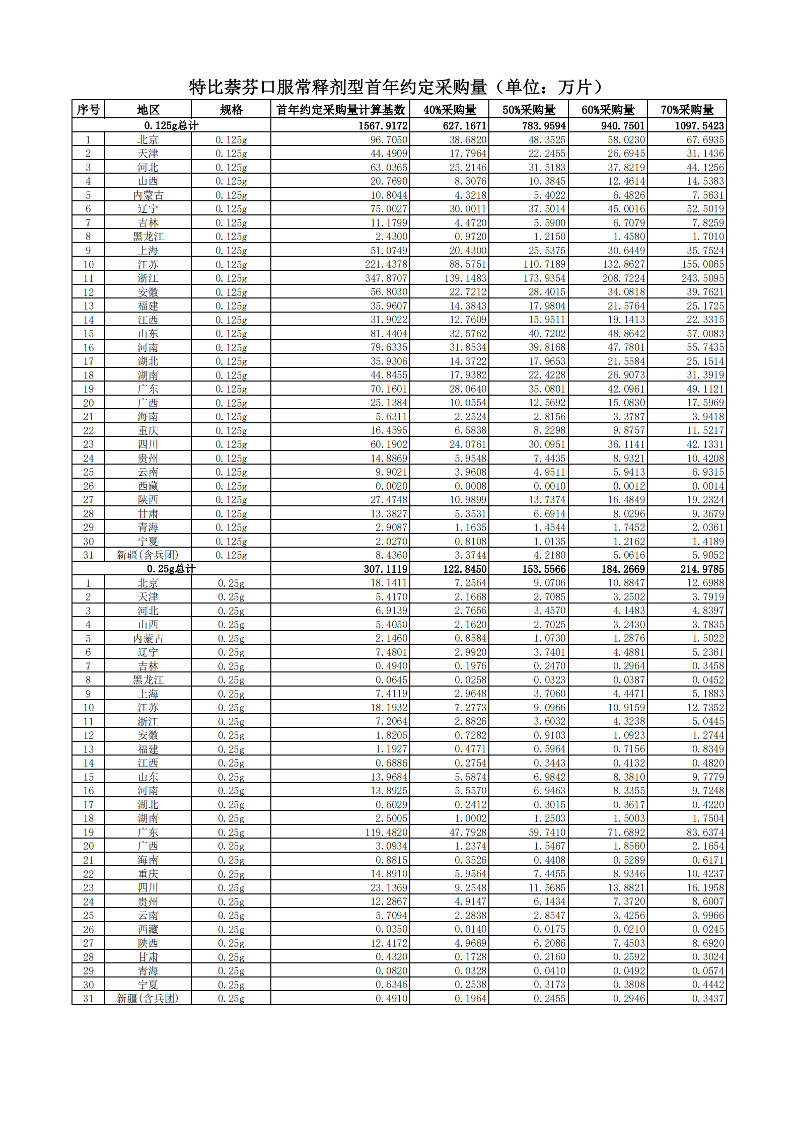 附表2 各地首年約定采購量