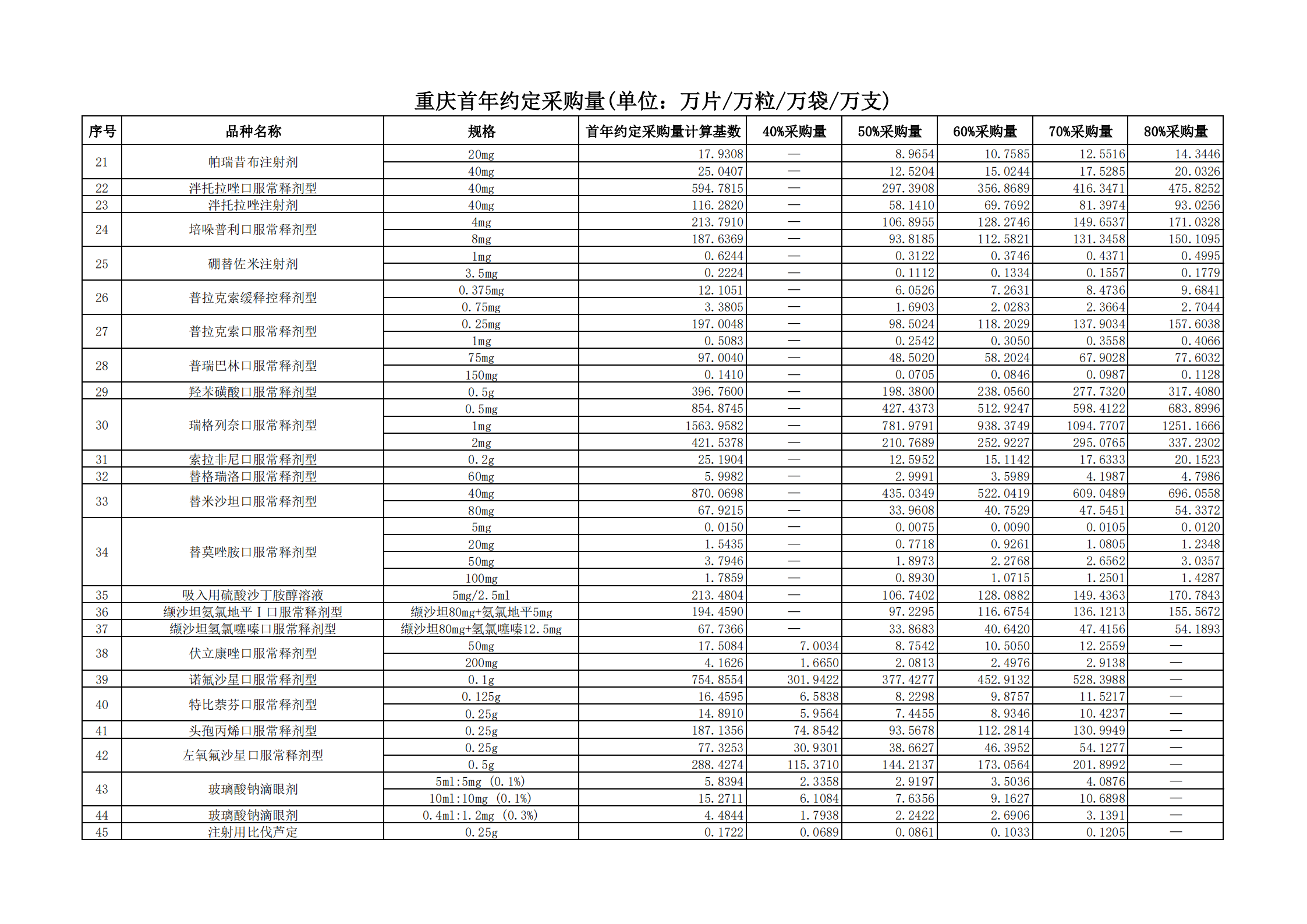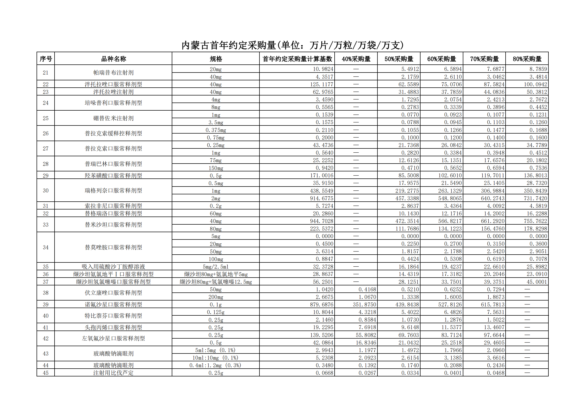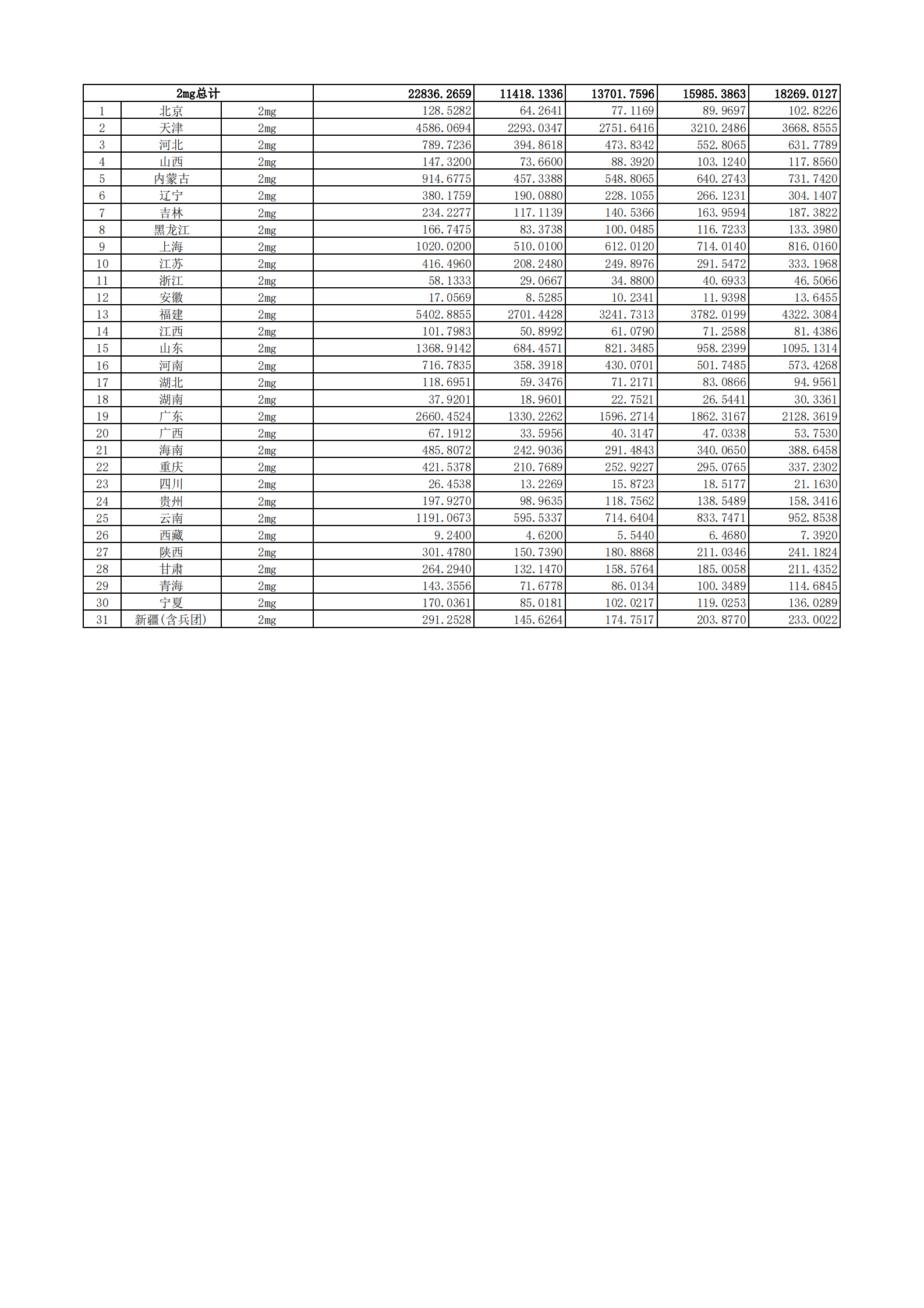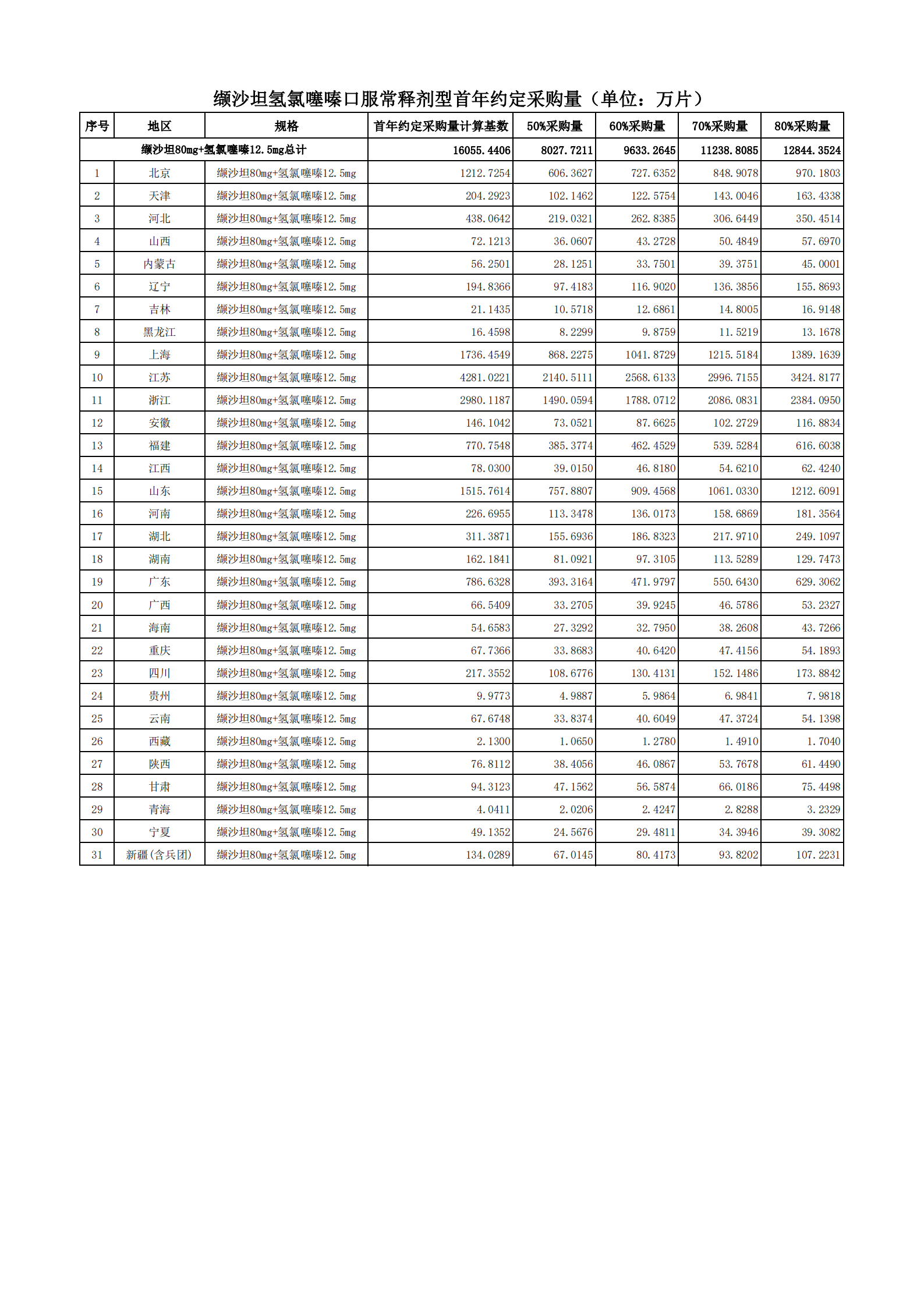 附表2 各地首年約定采購量