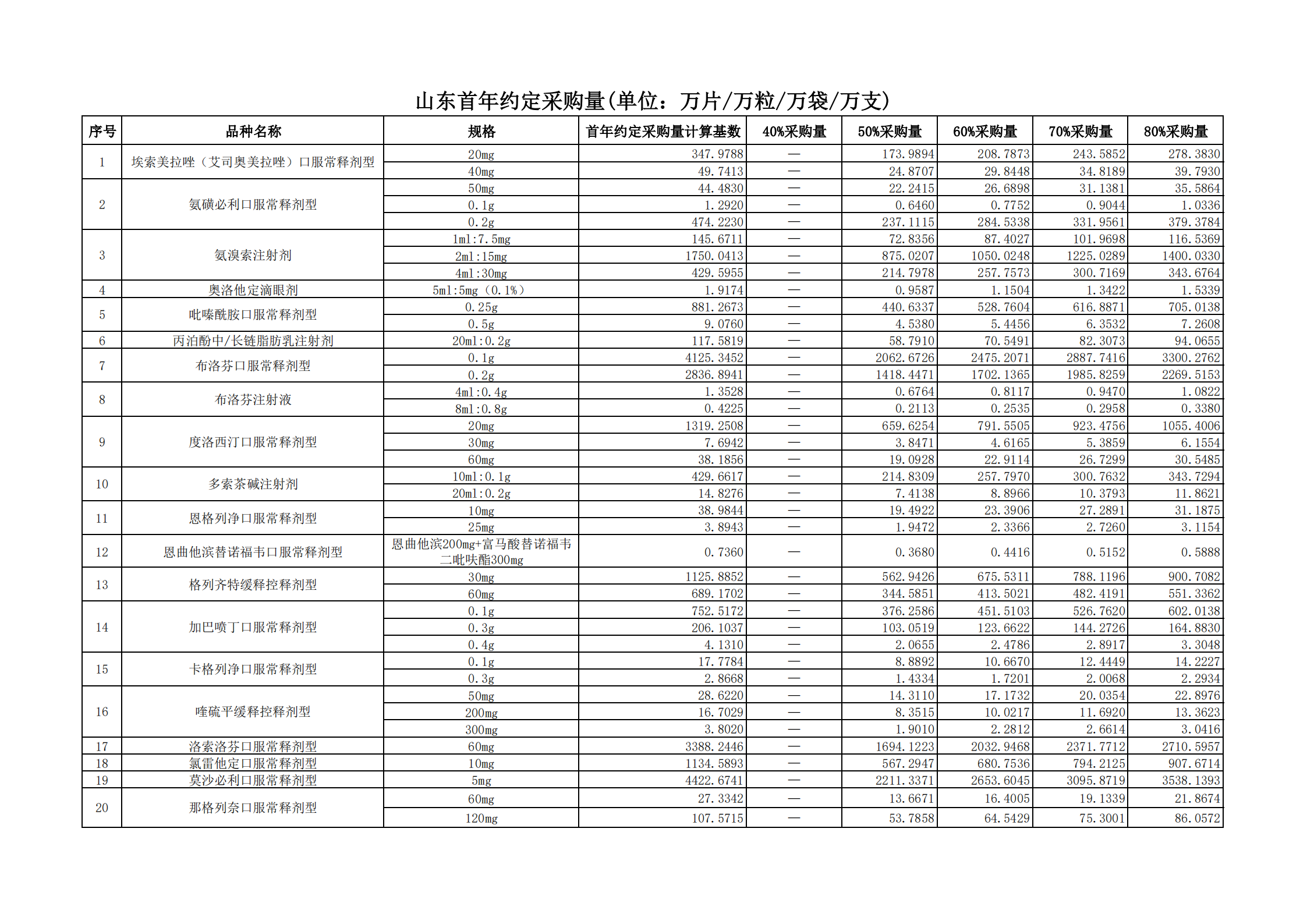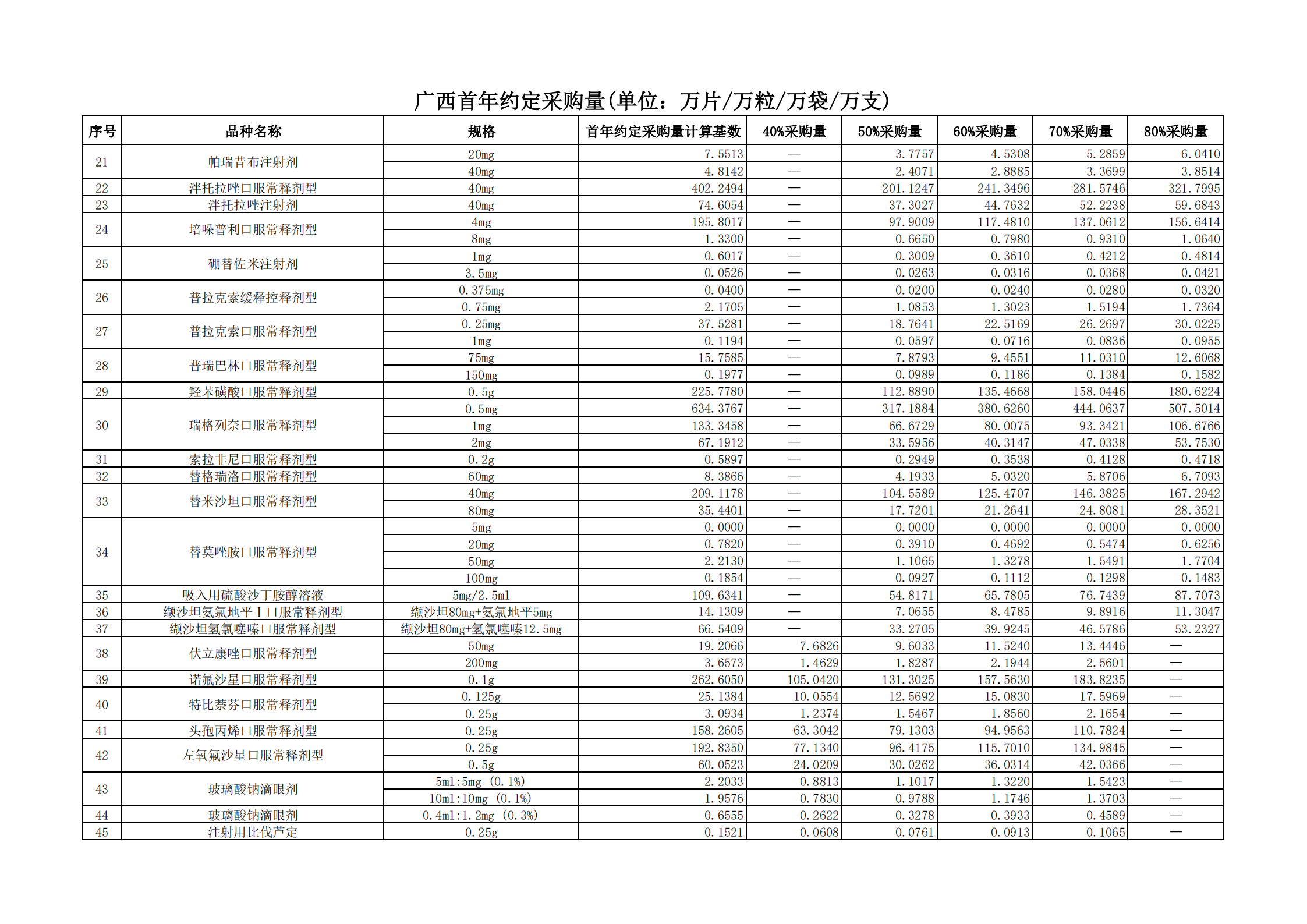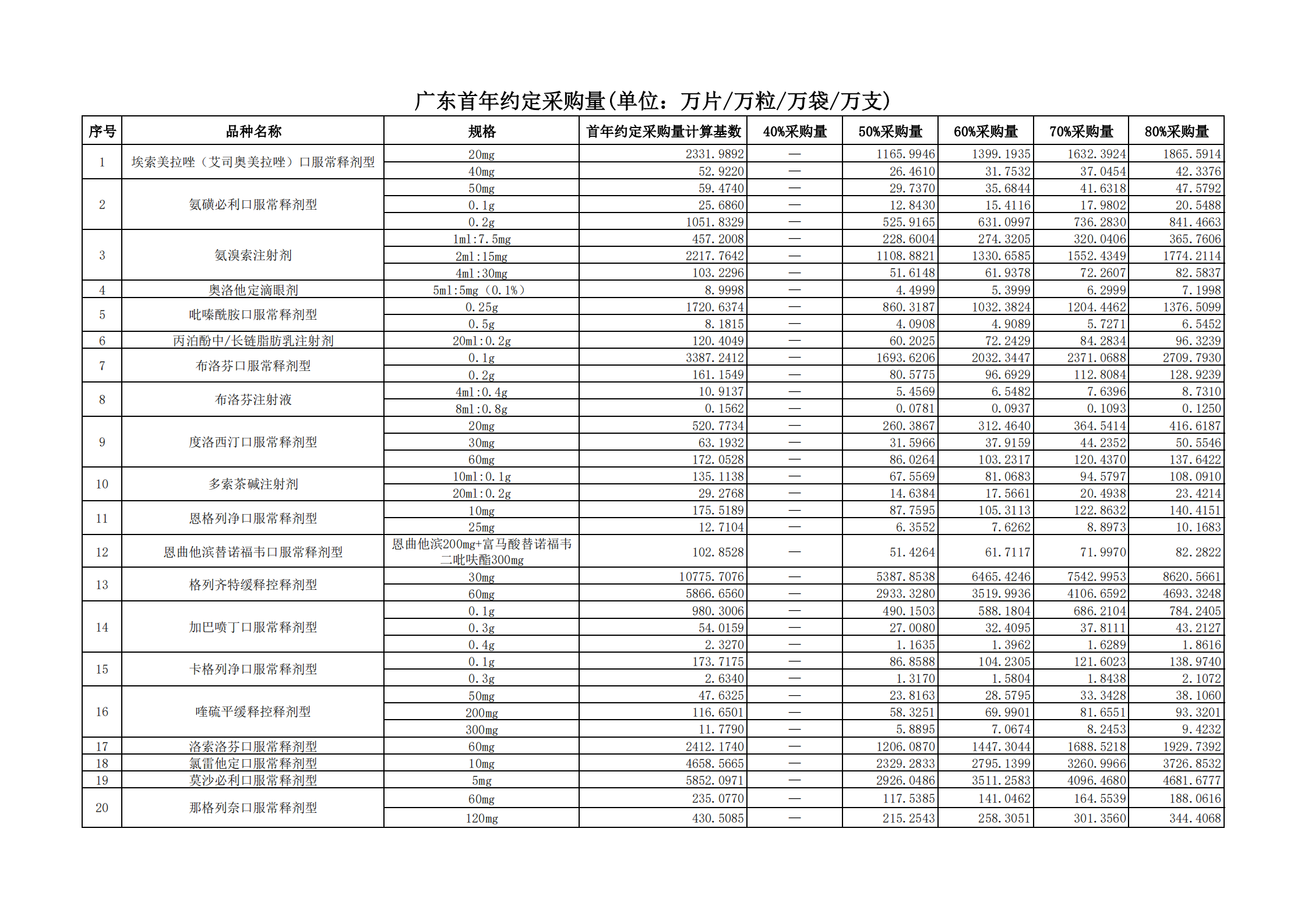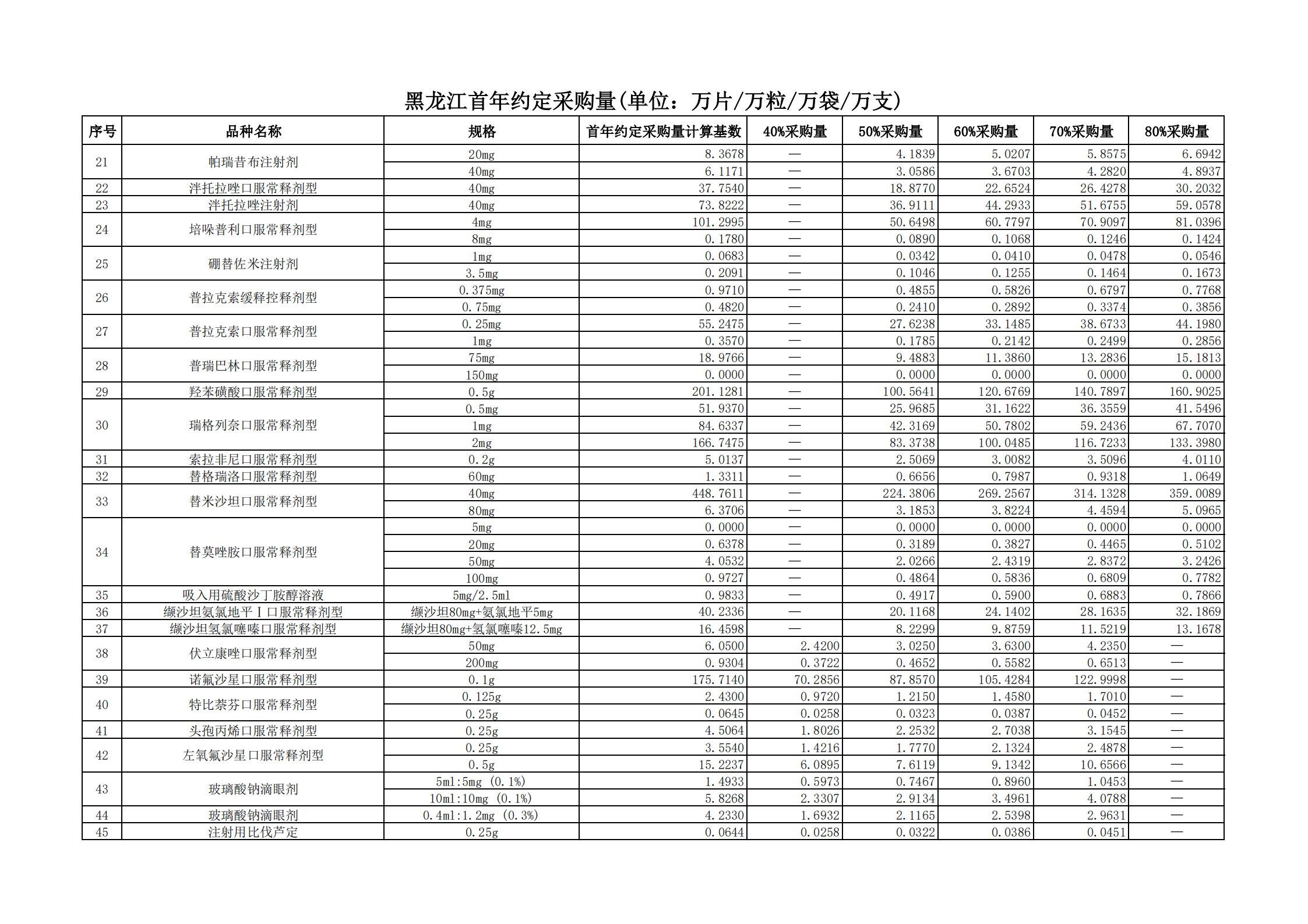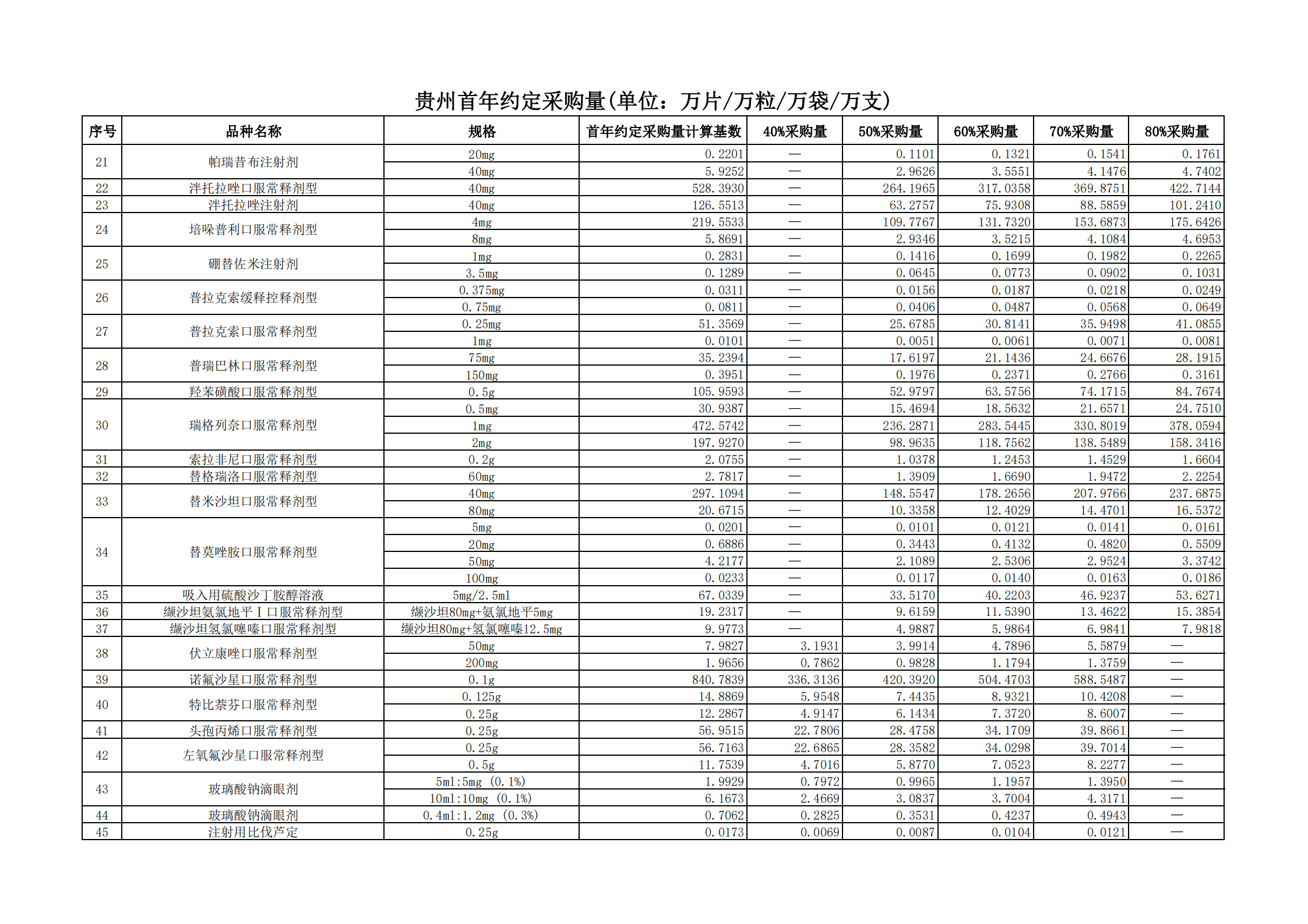 附表2 各地首年約定采購量