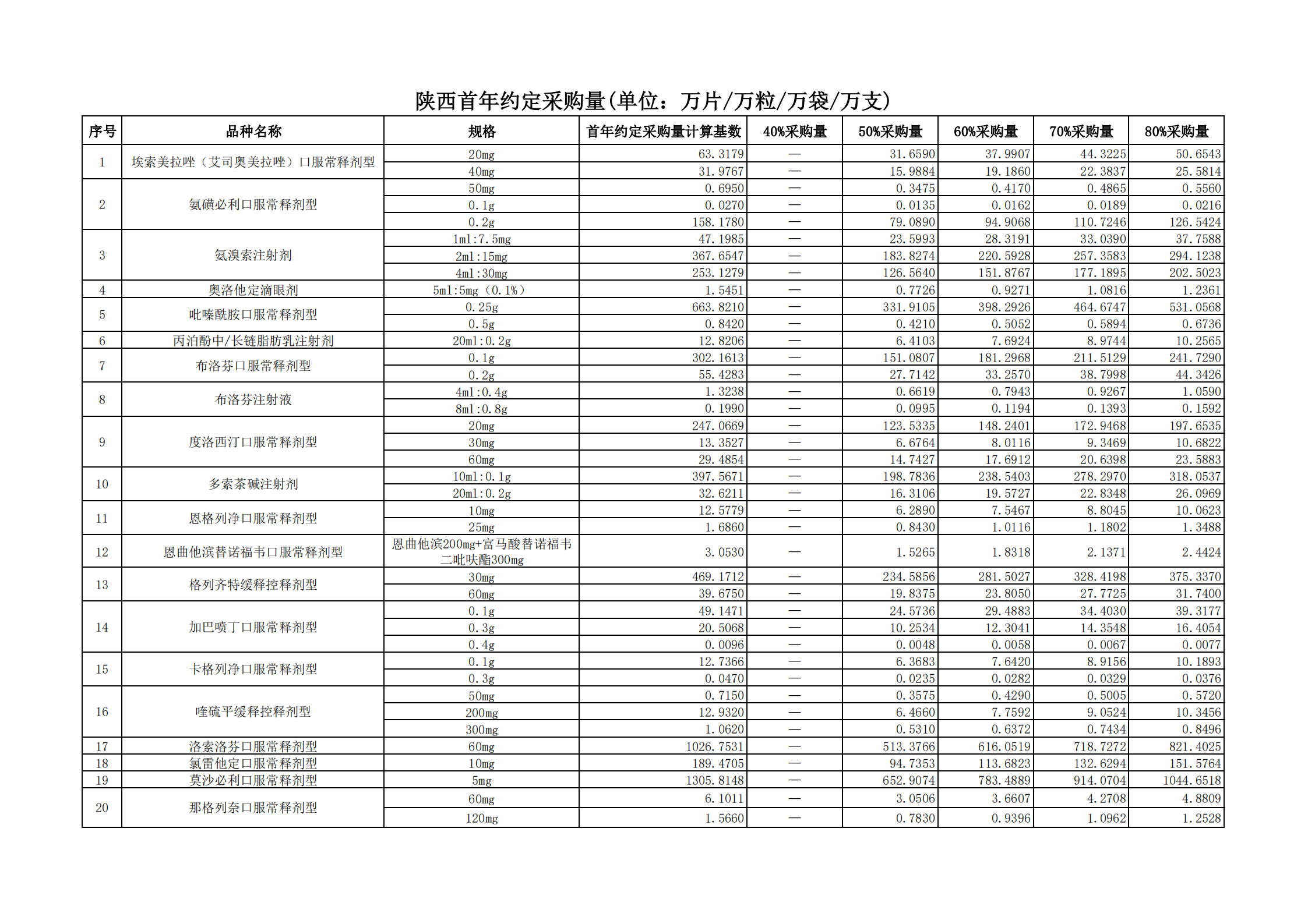 附表3 各采購品種首年約定采購量