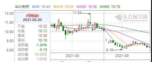 受斷供事件影響,華北制藥的股價近日連續走低,從10.32元/股降至8.4元/股,市值直接蒸發近35億!