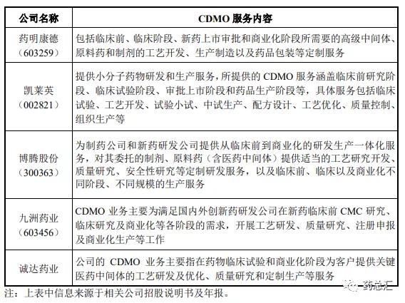 CDMO 企業(合同定制研發生產機構)除了提供傳統 CMO 的生產服務之外,更強調對生產工藝的研發和創新。CDMO 企業往往在新藥臨床階段的早期即與客戶開展深度合作,為客戶提供制藥工藝的開發、設計及優化服務,并在此基礎上提供從公斤級到噸級的定制生產服務。CDMO 企業利用自身技術優勢及生產能力,承接了制藥企業的工藝開發和生產職能,從而使制藥企業可以更專注于藥物的研發。