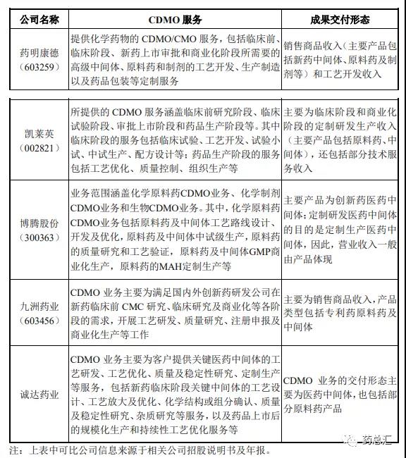 第四、公司 CDMO 服務內容及成果交付形態與同行業可比上市公司的 CDMO 服務內容及成果交付形態基本一致。具體比較如下: