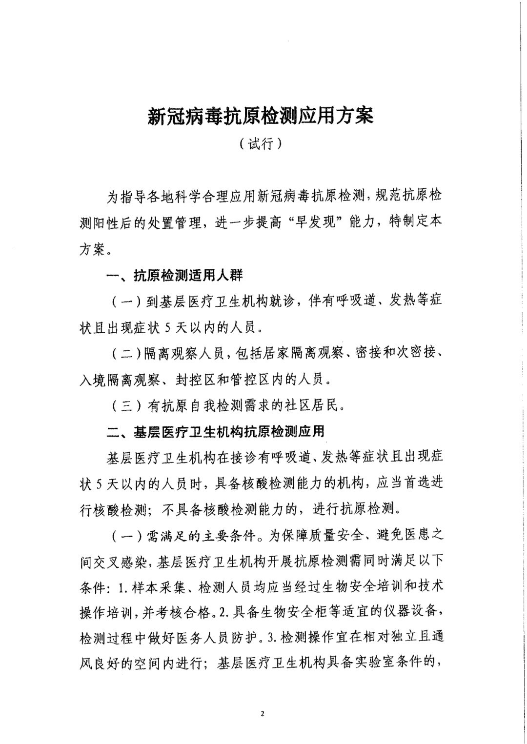 附《關于印發新冠病毒抗原檢測應用方案(試行)的通知》原文。