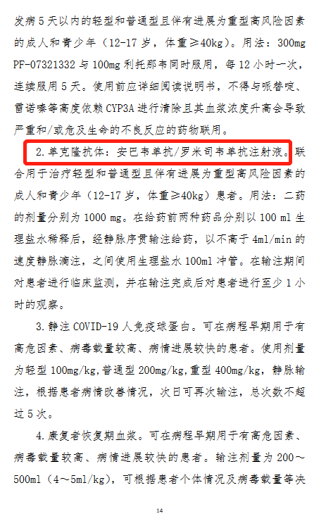 除中成藥外,新版診療方案將國家藥監(jiān)局批準的兩種特異性抗新冠病毒藥物納入,即利托那韋片(Paxlovid)和安巴韋單抗/羅米司韋單抗注射液。