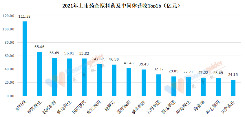 總的來說,前5名公司的原料藥及中間體業務營收都在50億元以上,top15的營收都在20億元以上。