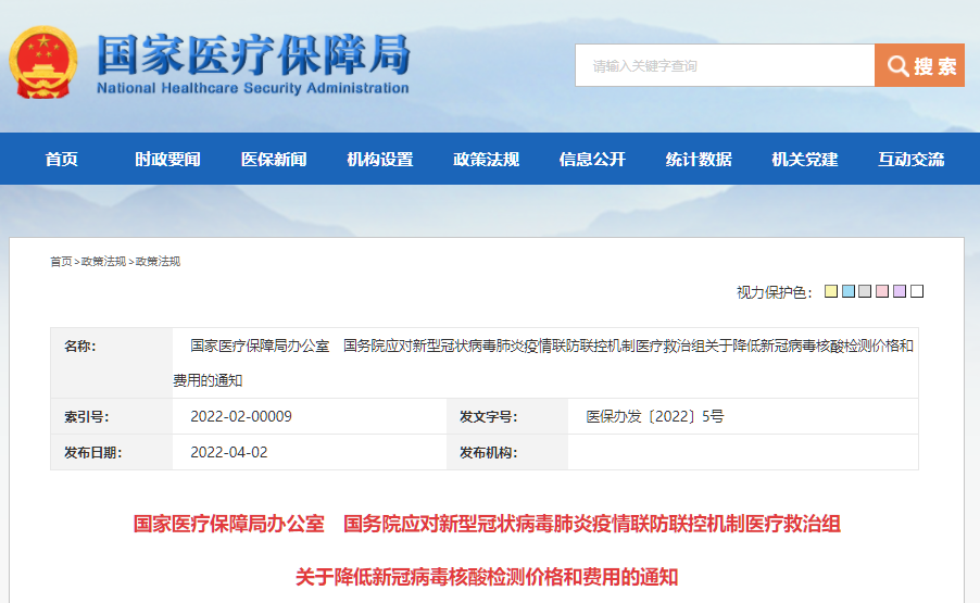 5月25日,國家醫(yī)保局辦公室、國務院應對新型冠狀病毒肺炎疫情聯(lián)防聯(lián)控機制醫(yī)療救治組印發(fā)《關于進一步降低新冠病毒核酸檢測和抗原檢測價格的通知》(簡稱《通知》),要求各地在6月10日前將新冠病毒核酸檢測單人單檢降至不高于每人份16元,多人混檢降至不高于每人份5元。