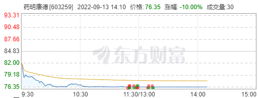 藥明康德到下午13點15分,一字跌停,跌幅10%,報收76.35元/股,總市值為2260億元,總市值較昨日已蒸發超250億元。