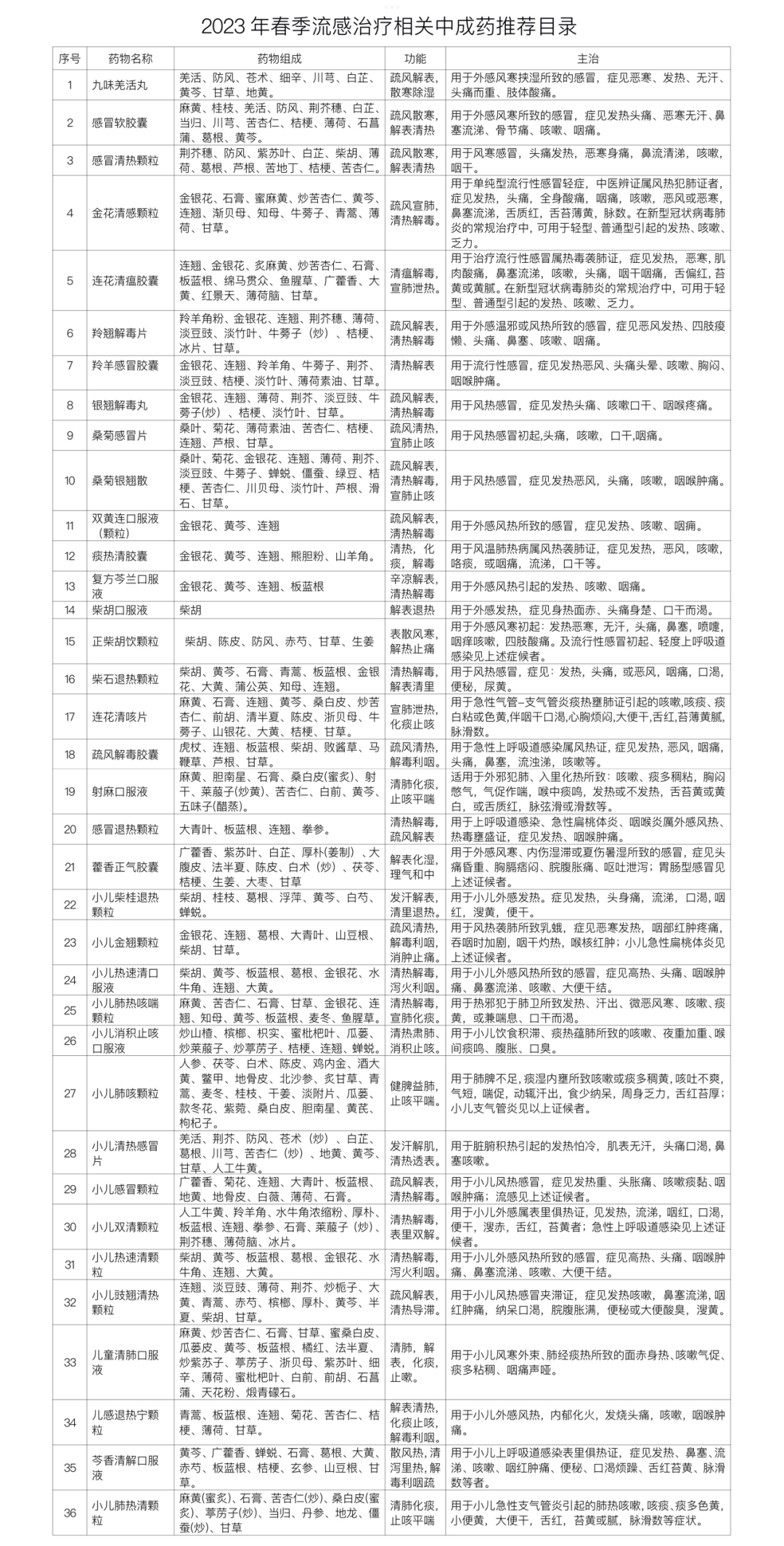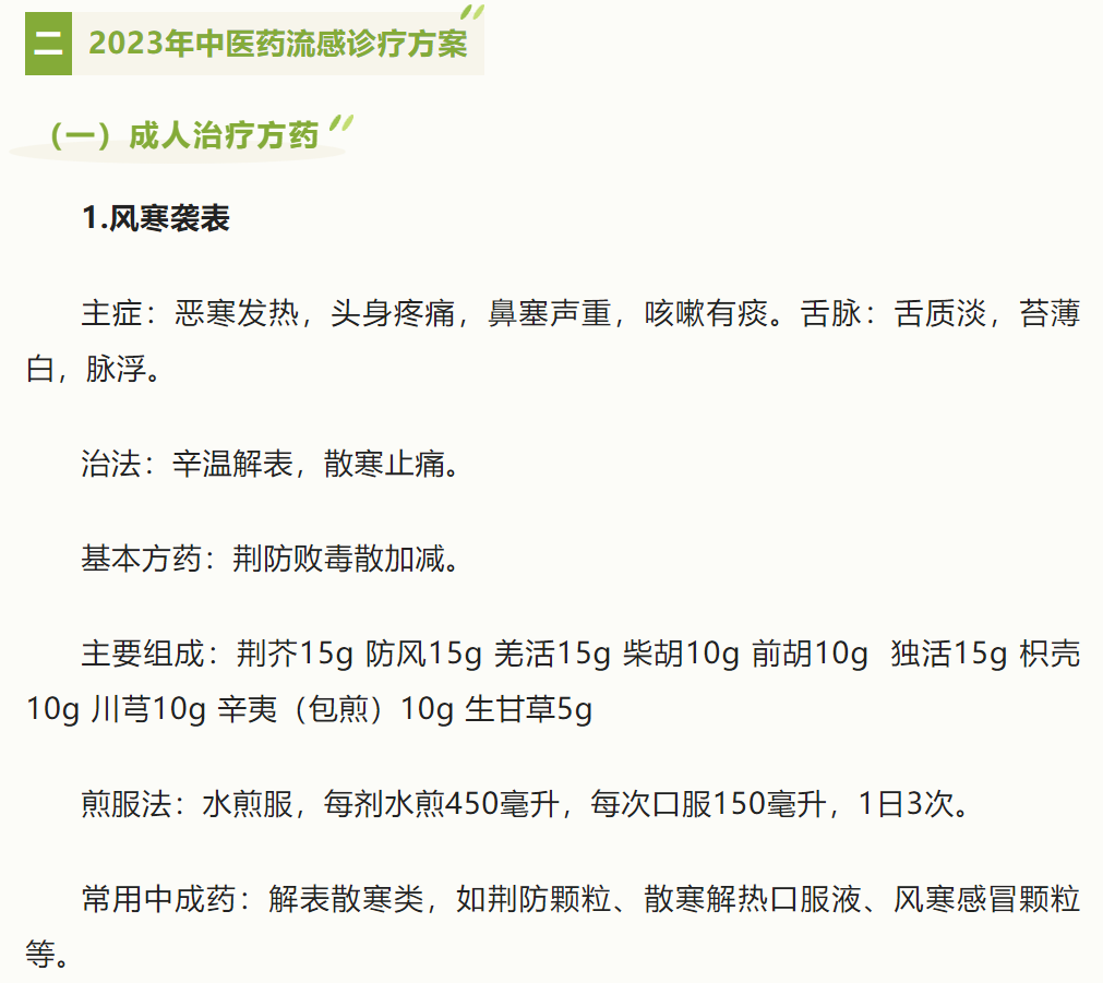 四川省2023年春季流感中醫(yī)藥防治指導(dǎo)方案(試行)