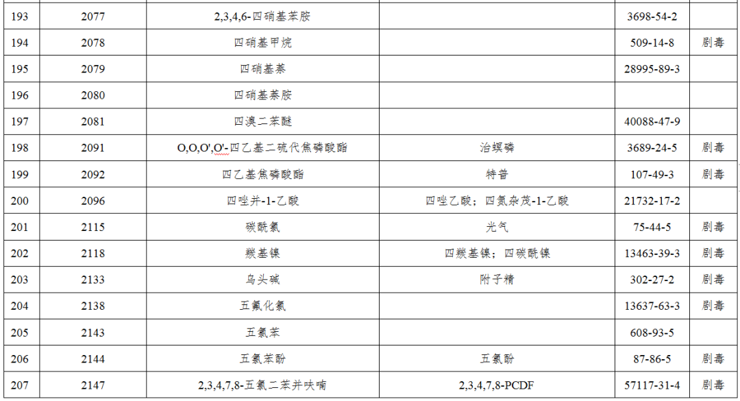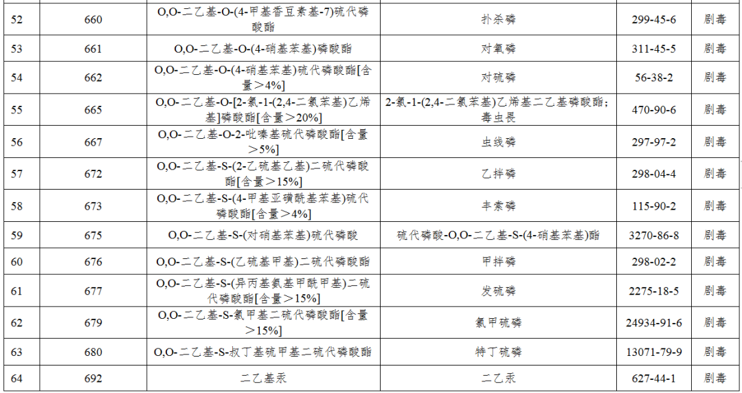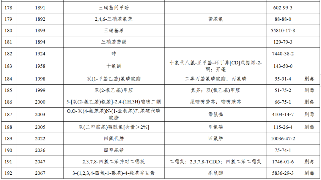 八甲磷、克百威、毒鼠強、水銀等246種?;窋M被列入禁止目錄,在北京行政區(qū)域內(nèi)禁止生產(chǎn)、儲存、使用、經(jīng)營和運輸(含過境運輸)。確需使用且符合首都功能定位和產(chǎn)業(yè)發(fā)展需求的,只能以符合要求的化學(xué)試劑包裝和氣瓶氣體形式使用和運輸。
