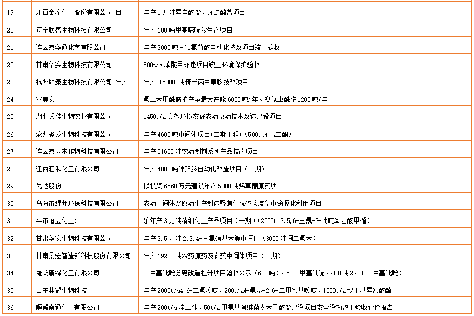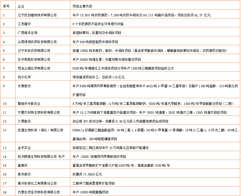 4月份我國農藥原藥(中間體)項目匯總