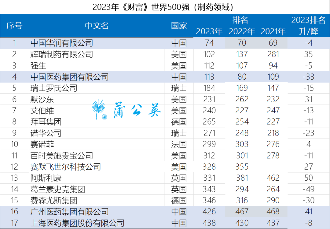 17家藥企上榜!2023年世界500強榜單發(fā)布!