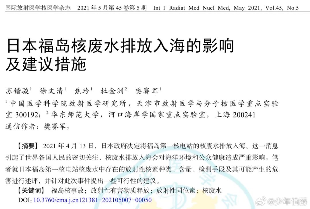 綜合上述信息,福島核廢水的放射性風險主力是3H(氚),這種放射性物質的β衰變會放出高速移動的電子,在皮膚外面不會穿透人體,毒性相對較低,只有大量吸入或者食用,被人體用于細胞代謝,造成內照射,才會嚴重危害健康。