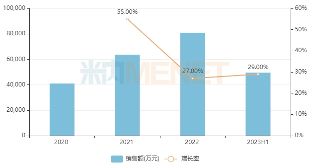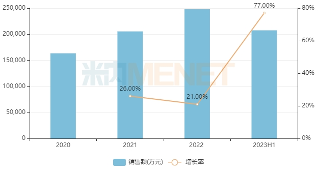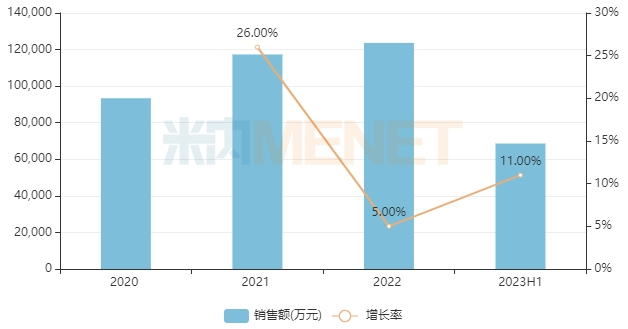 復方黃柏液涂劑為國家醫保乙類產品,具有清熱解毒、消腫祛腐等功效,用于瘡瘍潰后,傷口感染,屬陽證者。該產品近年來在中國三大終端六大市場的銷售額均以兩位數的增速增長,2022年突破8億元,2023上半年接近5億元,為中國公立醫療機構終端最暢銷的皮膚科中成藥。