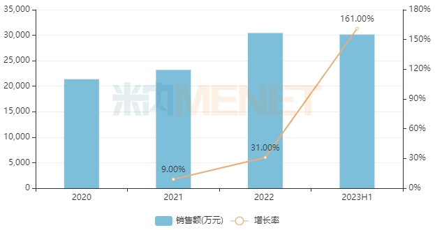 正大青春寶藥業的冠心寧片為國家醫保乙類產品,具有活血化瘀、通脈養心等功效,適用于冠心病穩定型勞累性心絞痛Ⅰ、Ⅱ級中醫辨證屬心血瘀阻證,癥見胸痛、唇舌紫暗等。數據顯示,近年來該產品在中國三大終端六大市場的銷售額逐年上漲,2022年接近3億元,同比增長55%,2023上半年接近2億元,全年銷售額有望再創新高。
