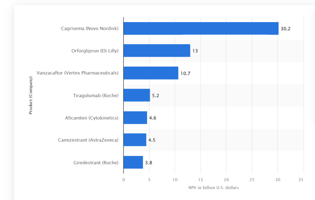 4.Selected top pharmaceutical R&D projects based on net present value(NPV)as of December 2023.Statista.Retrieved on 09.02.2024.