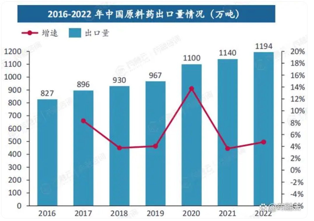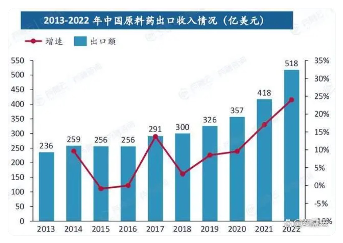中國作為原料藥出口大國,在全球原料藥市場中占有重要地位。近年來,中國原料藥出口規模持續增長,尤其是在疫情爆發后,出口收入增速明顯加快。